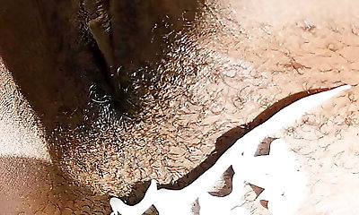 Perveted Girl Ebony shows off her nice big ass and fleshy pulsing cunny while ejaculating multiples