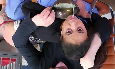 Hot black submissive girl disciplined with a bowl of cum