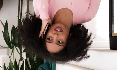 Black damsel fingers her box while waiting for cock