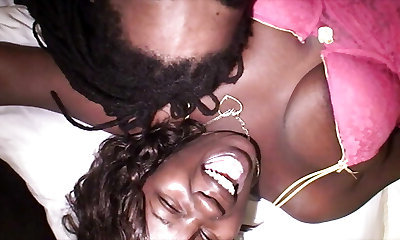 Torrid and beautiful black hottie squeezes her phat tits during hot missionary