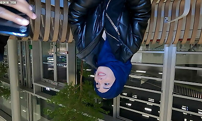 Iranian woman Nadja is wearing a hijab and gets anally fucked in the toilet and in a hallway to pay for the plane!!!