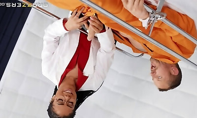 Horny and hot black therapist flashes her melons before patient fucks her mish
