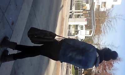 Phat Bbc! Big Black Chisel Flash At Public Bus Stop 4 Min