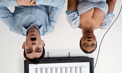 Super-steamy babe with black glasses is good at blowjobs, and her lover likes it a lot
