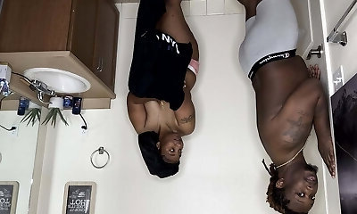 Black stud wearing glasses humps shaved cunt of sexy ebony teen