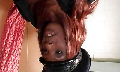 Busty and slutty ebony bi-atch in glasses is here to feed on big man-meat in the gloryhole