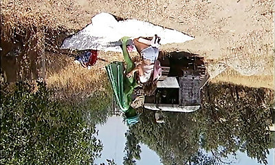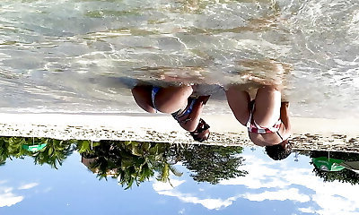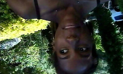 Pretty black lesbian cougars are having fun outdoor near the lake