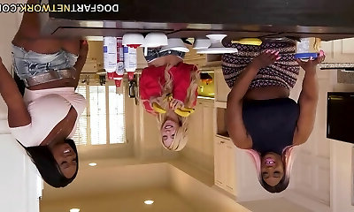 Humungous ebony women fuck white petite blondie Kenzie Reeves in the kitchen