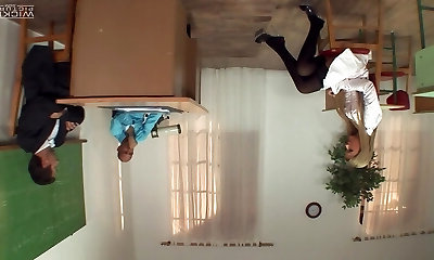 Teacher Taunt the Student with Her Legs in Stocking and Gives Him Cum on Legs