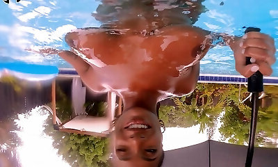 Hilarious xxl breasted first-timer black head gives me BJ in the swimming pool