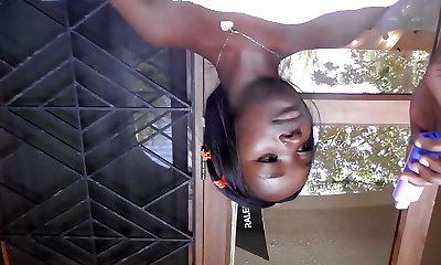 Sexy ebony girl smoking a cigarette in amateur hookup clip