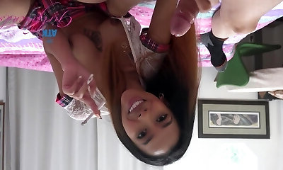 Smoking slut talking filthy while playing with her friend's diminutive pussy