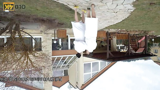 OLD4K. Doll with dark-hued hair looks gentle when elder weenie comes in her