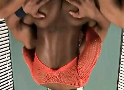 Horny guy plows his jaw-dropping ebony crossdresser dancing girlie in missionary position