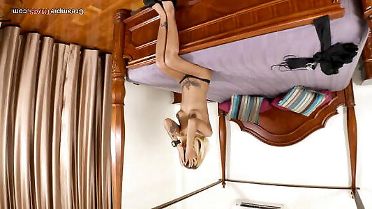 Hottest Cute Small Tits Tight Pussy Petite Blonde Babysitter on the Bed without any Underwear teases