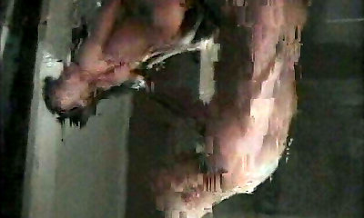 Black Girl in High High-heeled Shoes Fucks a White Guy in a Gloryhole