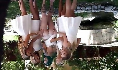 Just weird Russian fucksluts with red and dark-hued hair have naked party