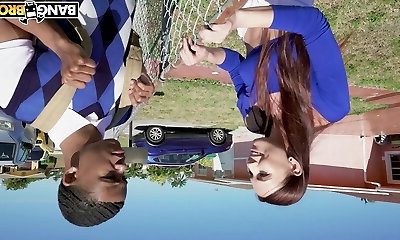 Aliana Love takes off her bikini for a intercourse session with a black man