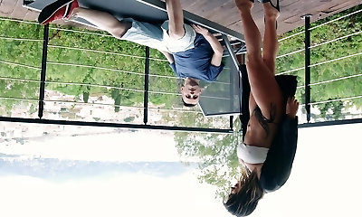 Beautiful Amateur Black Model Faux Audition Railing
