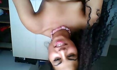 Dark chocolate gal teases great ass and shows puffy tits