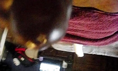 Super-steamy black girl bends over for her girlfriend's cable-on