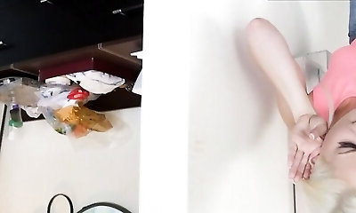 Monroe Sweets is ready to take a belt cock in her hole in the way of doggy